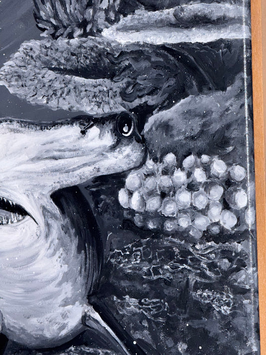 Emma’s expressive use of colours are parallel to her views and perceptions of nature, in particular fauna. Though Emma uses a variety of styles and mediums to portray various scenes, her heart never strays too far from using the ocean as inspiration. She has a deep fascination with different species of sharks, whales and other ocean animals.