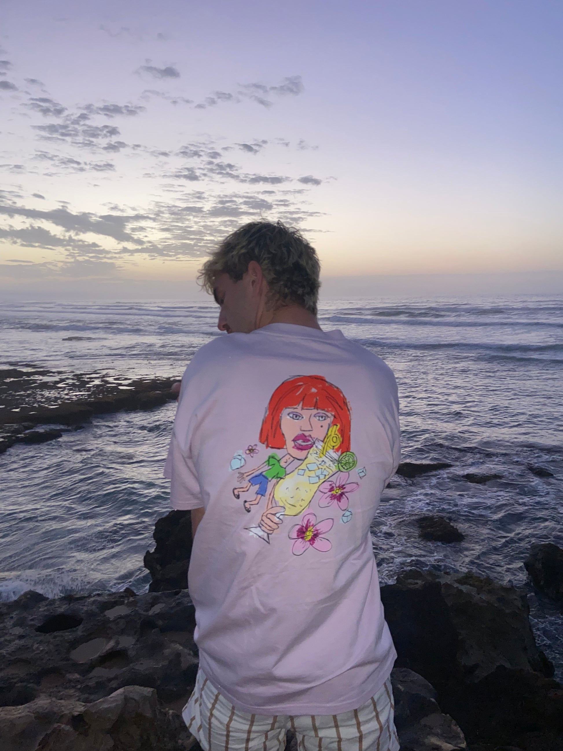 The Cocktail Box Tee is more of a loose fit than a typical shirt. It is heavy weight and provides extra warmth however it is still perfect to throw on at the beach. It looks fantastic in a slightly larger size as an ‘oversized tee.’ The sizing is in men’s however it is for all genders and sex’s.